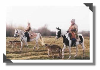 Bartek Szmurlo on the white horse with CH Pl Harap Celerrimus HARAP Celerrimus Polish Junior CH, Polish Coursing CH, Young European Win. Young World Win., Sighthound Club Winner, Polski Chart Club Winner, Best of Polish Breed, Special Polish Breed Clubs show: viceBIS, BOG, ... 4x CACIB, Multi BOB Adam