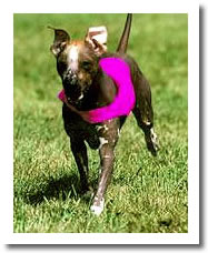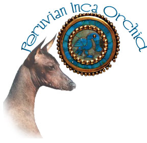 The Peruvian Inca Orchid is a hairless sight hound native to South America. He is trim, fast and graceful; much like a deer in structure and movement. The PIO is reserved with strangers at first and needs early socialization. He is independent yet easy to live with, gets along with other dogs and is usually good with children. If a light skinned variety, he needs protection from cold and sun though he is hardy. The hairless have upright ears while the coated have drop ears. All colors are allowed but white or pink background with colored spots is preferred. |