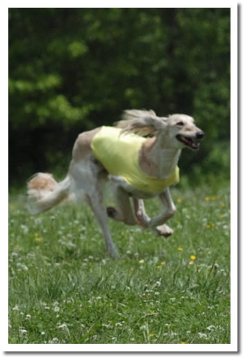 Hounds shown on the earliest carvings from the earliest known civilizations look more like Salukis than any other breed: they have a Greyhound body with feathered ears, tail, and legs. Exactly the same hound appears on the Egyptian tombs of 2100 B.C. and more recent excavations of the still older Sumerian empire, estimated at 7000-6000 B.C., have produced carvings of striking resemblance to the Saluki. The name Saluki is derived from the ancient city of Saluk in Iraq southeast of Baghdad. The breed has a number of names throughout the Gulf - e.g., Tazi in Persia Sloughi in North Africa (Morocco), Azawakh in Mali and other parts of Africa, Salaq in the southwest of the Arabian Peninsula in Yemen, and in Armenia to the west of the Caspian Sea. |